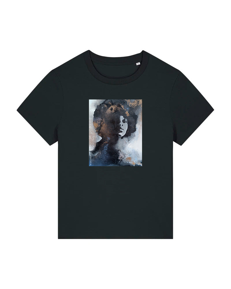 Tässä hieman lyhyemmässä ja kevyesti muotoon leikatussa women-mallisessa t-paidassa on rinnassa painatus Juha Lahtisen upeasta taideteoksesta Cold game. Täydellinen t-paita esimerkiksi farkkujen kanssa. Värit valkoinen ja musta. Laadukasta 100% luomupuuvillaa.