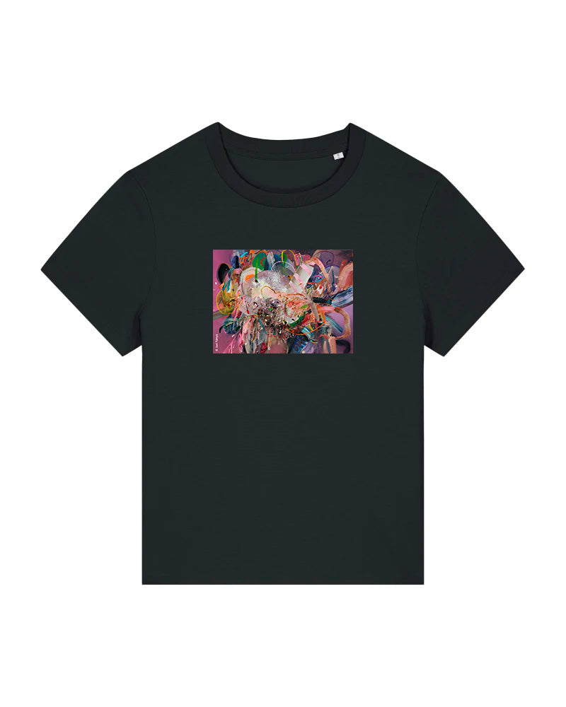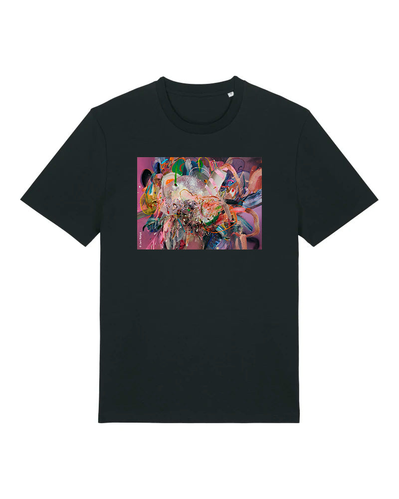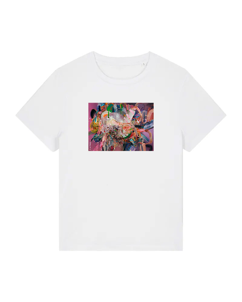 Laadukas 100% luomupuuvillainen t-paita jossa painatus Jani Rättyän taideteoksesta Herkuttelu. Saatavilla sekä unisex että naistenmalli. Istuvuus Medium fit. Värit valkoinen ja musta.