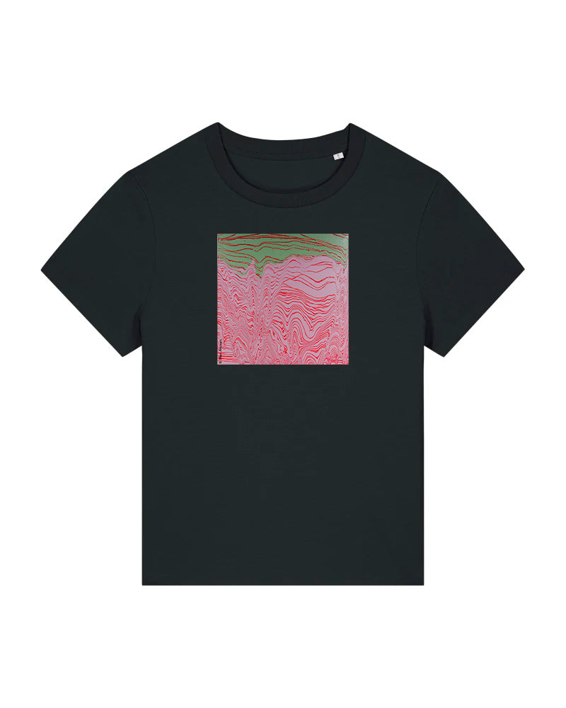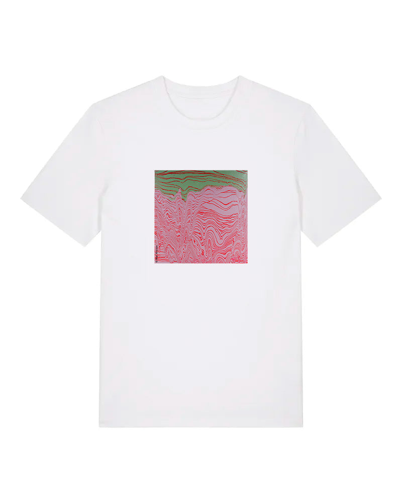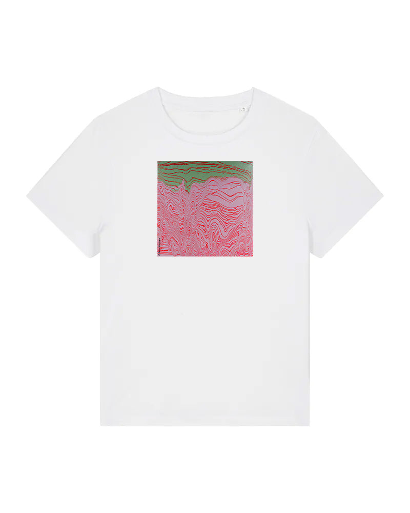 Laadukas 100% luomupuuvillainen t-paita jossa painatus Mari Arvisen taideteoksesta Aamusumu.