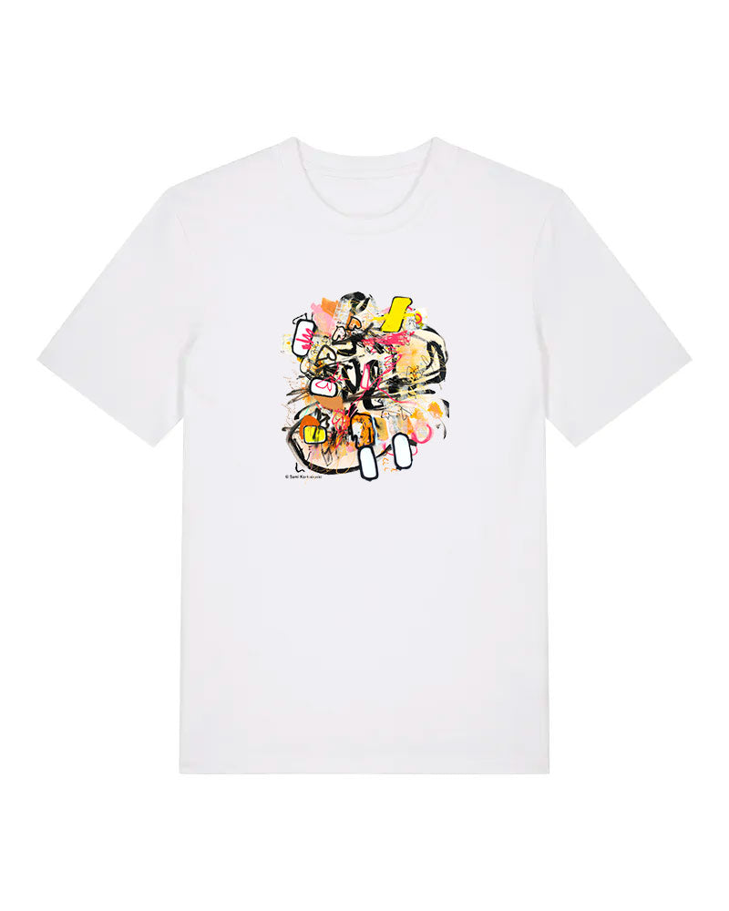 Laadukas 100% luomupuuvillainen t-paita jossa painatus Sami Korkiakosken taideteoksesta Splash. Saatavilla sekä unisex että naistenmalli. Istuvuus Medium fit.