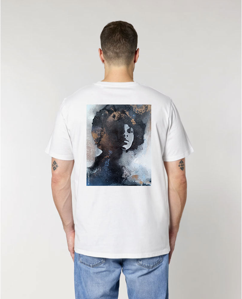 Rento unisexpaita jossa selässä printti Juha Lahtisen taideteoksesta Cold game. Materiaali laadukasta 100% luomupuuvillaa.