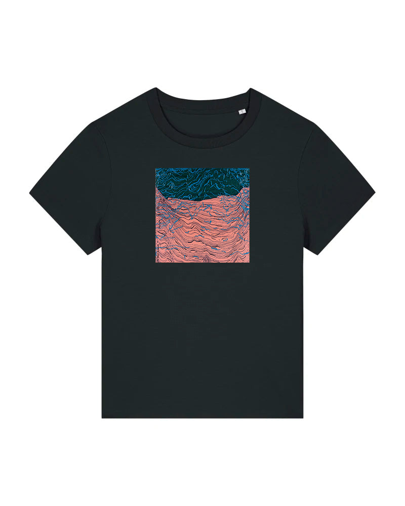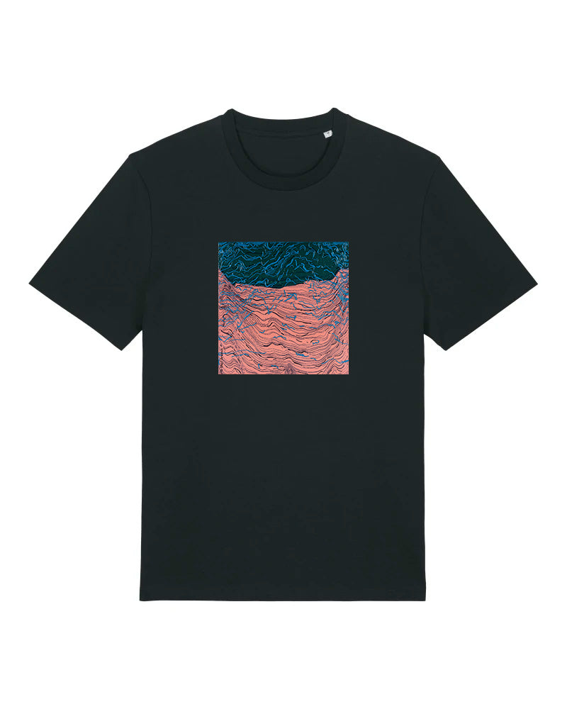 Laadukas 100% luomupuuvillainen t-paita jossa painatus Mari Arvisen taideteoksesta Syke. Saatavilla sekä unisex että naistenmalli. Istuvuus Medium fit. Värit valkoinen ja musta.