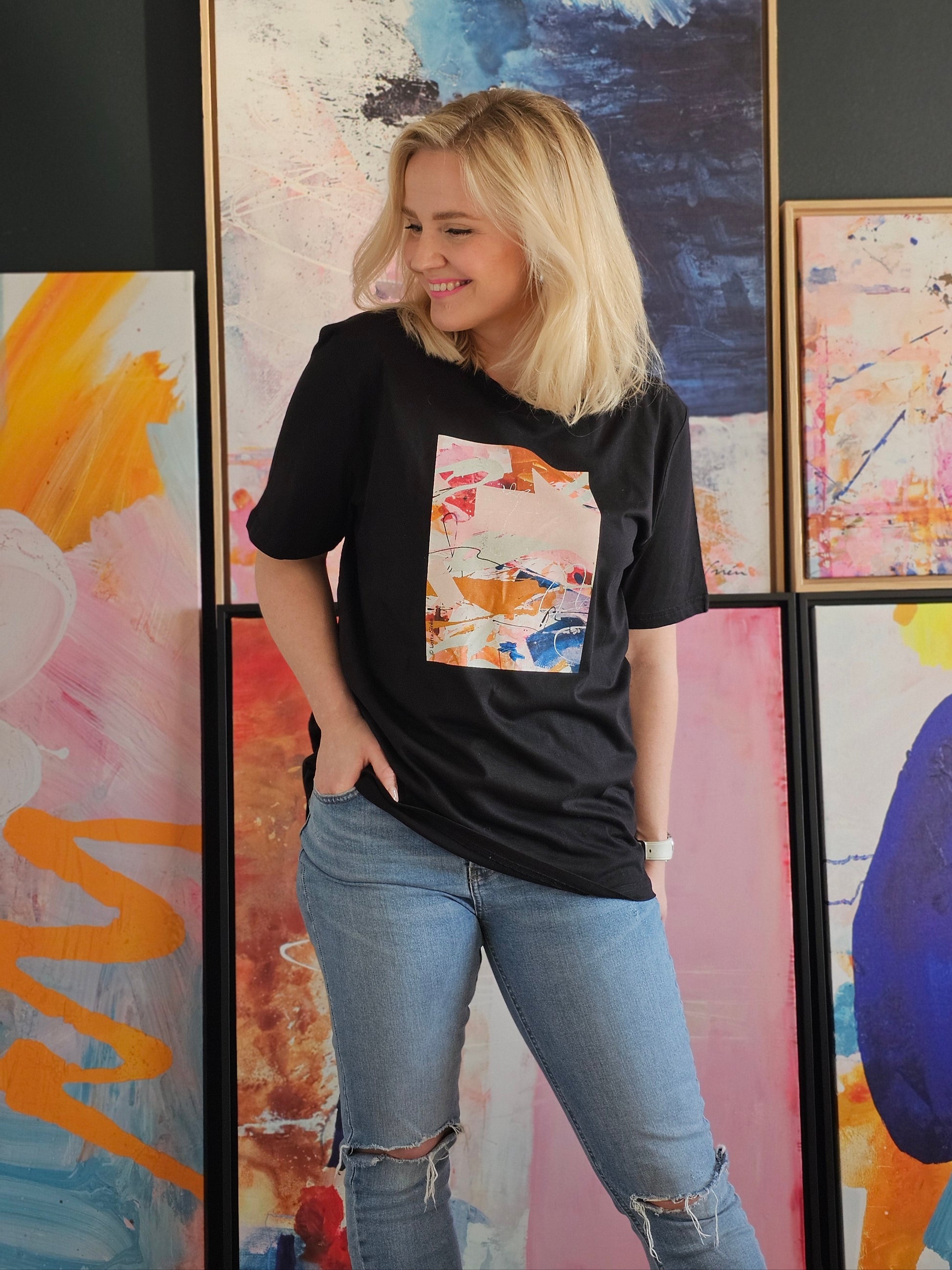 Laadukas 100% luomupuuvillainen t-paita jossa painatus Lotta Sirénin taideteoksesta Worlds collide. Istuvuus Medium fit. Saatavilla sekä unisex että naistenmalli. Värit valkoinen ja musta.