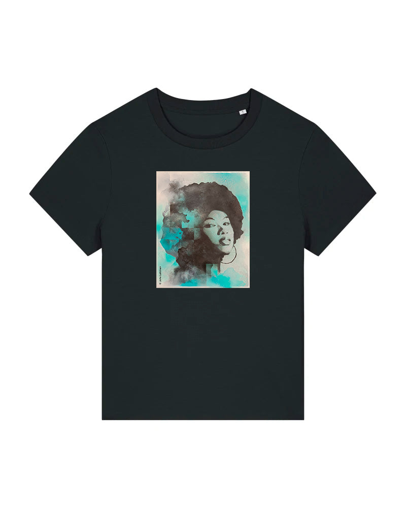 Tässä hieman lyhyemmässä ja kevyesti muotoon leikatussa women-mallisessa t-paidassa on rinnassa painatus Juha Lahtisen graffitityylisestä taideteoksesta The other side. Täydellinen t-paita esimerkiksi farkkujen kanssa. Värit valkoinen ja musta. Laadukasta 100% luomupuuvillaa.