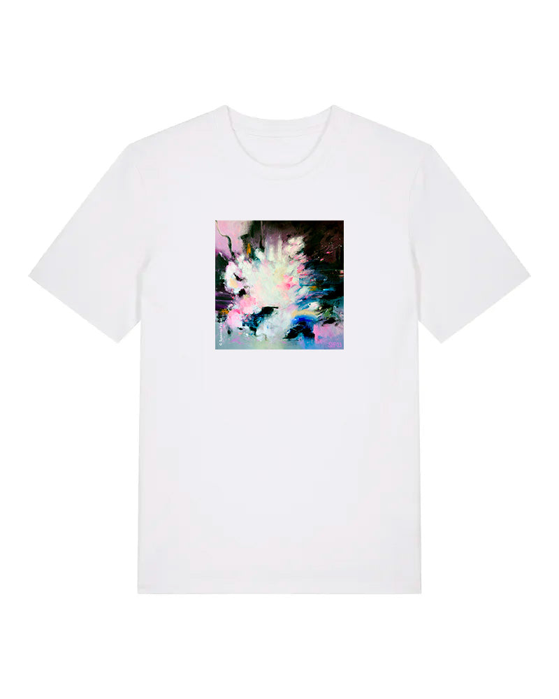 Laadukas 100% luomupuuvillainen t-paita jossa painatus Susanna Poméllin taideteoksesta The universe needs you here. Saatavilla sekä unisex että naistenmalli. Istuvuus Medium fit. Värit valkoinen ja musta.